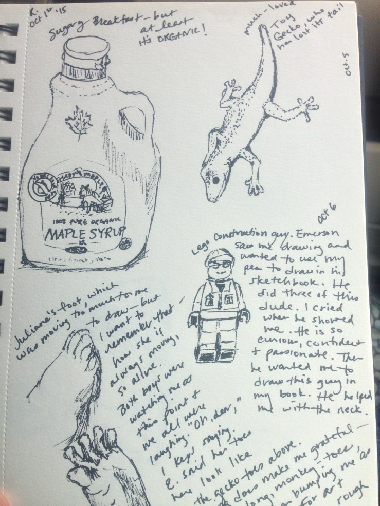 The pressure of trying to get it right every time lifts a little each time I remember. Every day is an experiment, something which my kids seem to know already. Like the person who practices yoga or meditation, practice is not for an upcoming test, or for the “real thing” later (whatever that means). The practice is the thing, the step every day on the path I want to live.