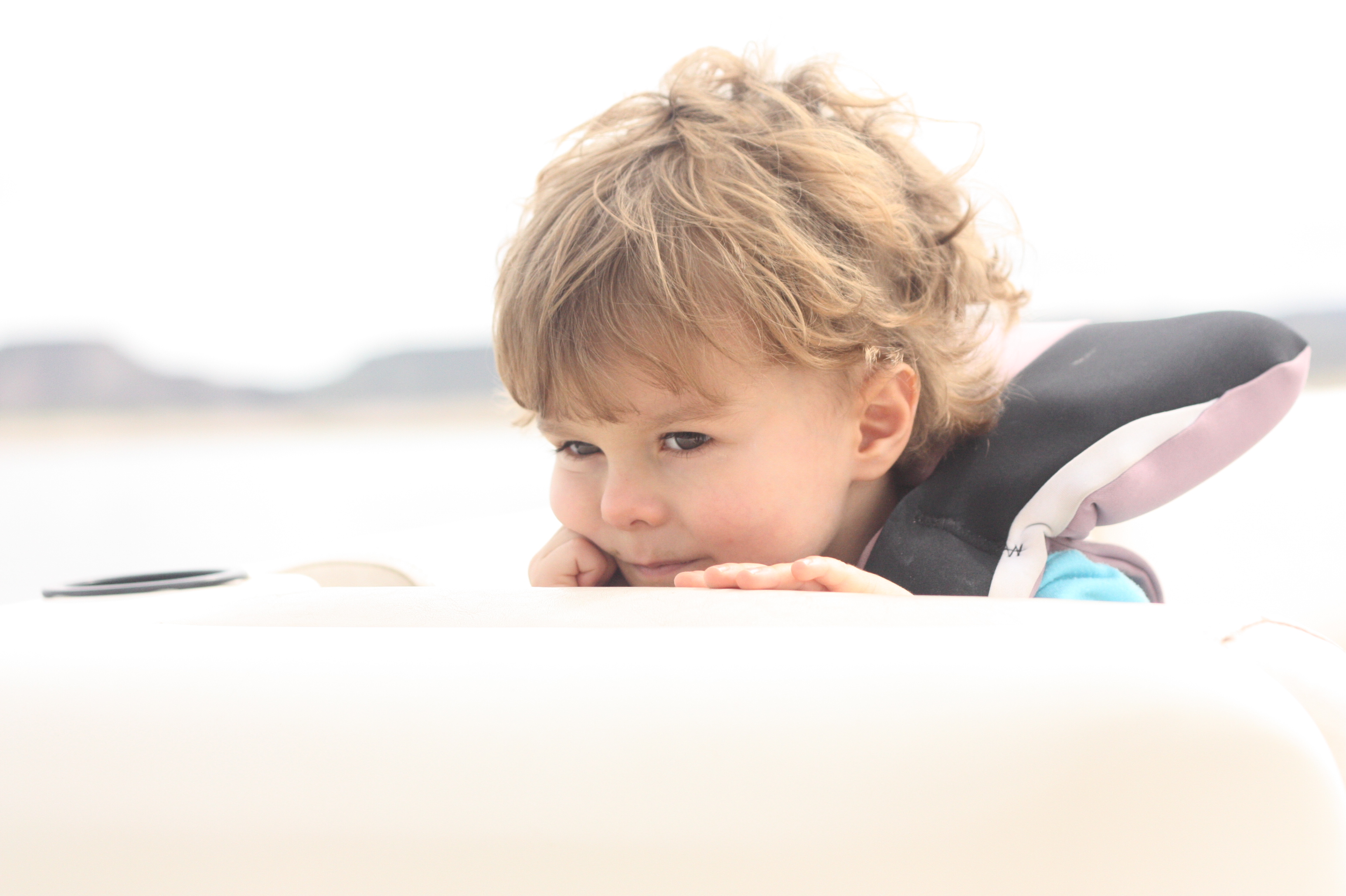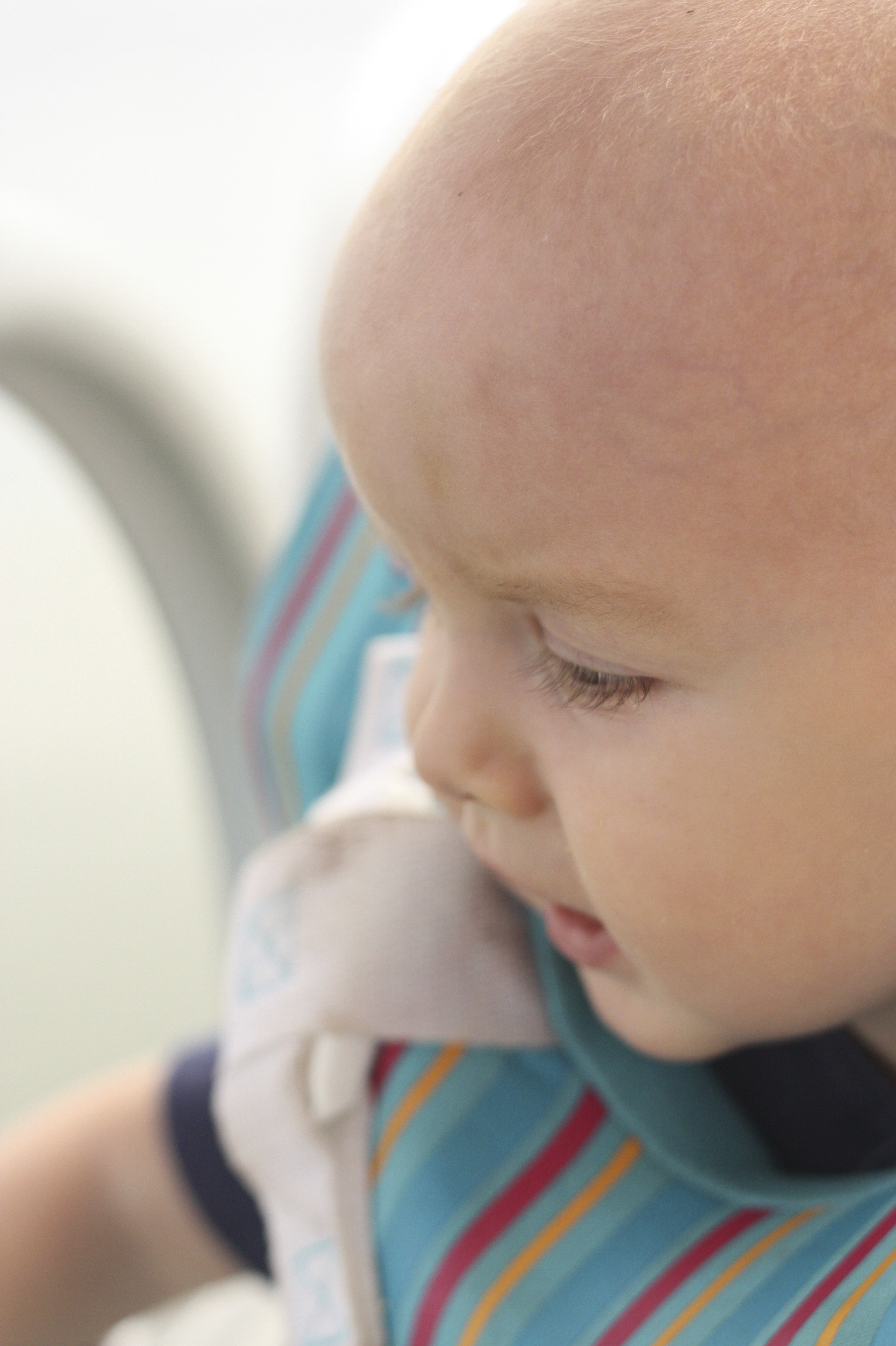 My son sniffs and relaxes,